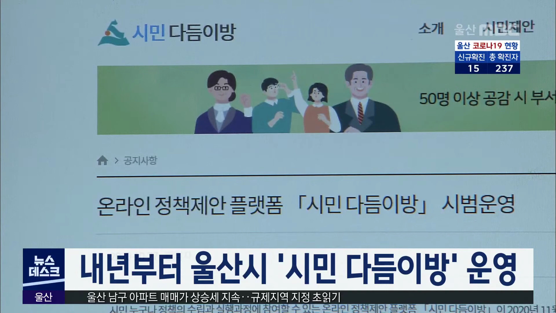울산형 소통 홈페이지인 '시민 다듬이방'이