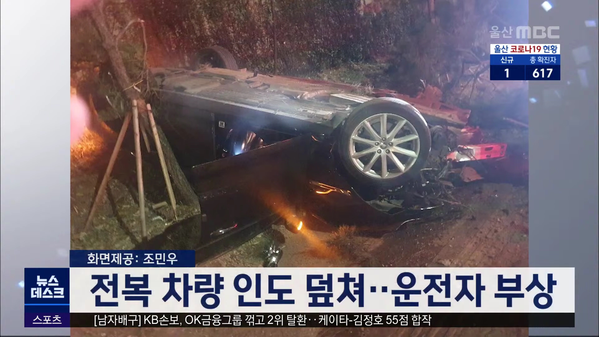 승용차 1대가 전복되며 인도를 덮쳤습니다.