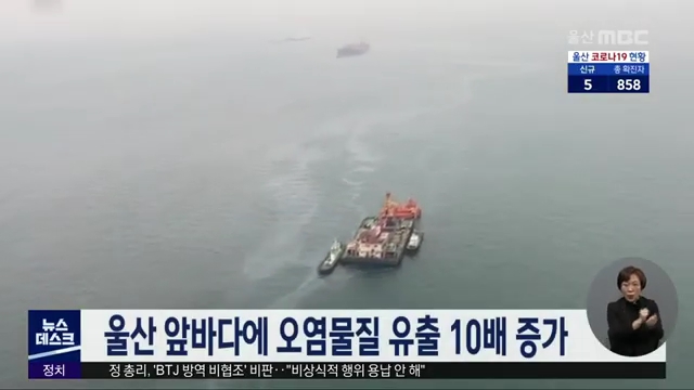 울산 앞바다에 해양오염물질 유출이