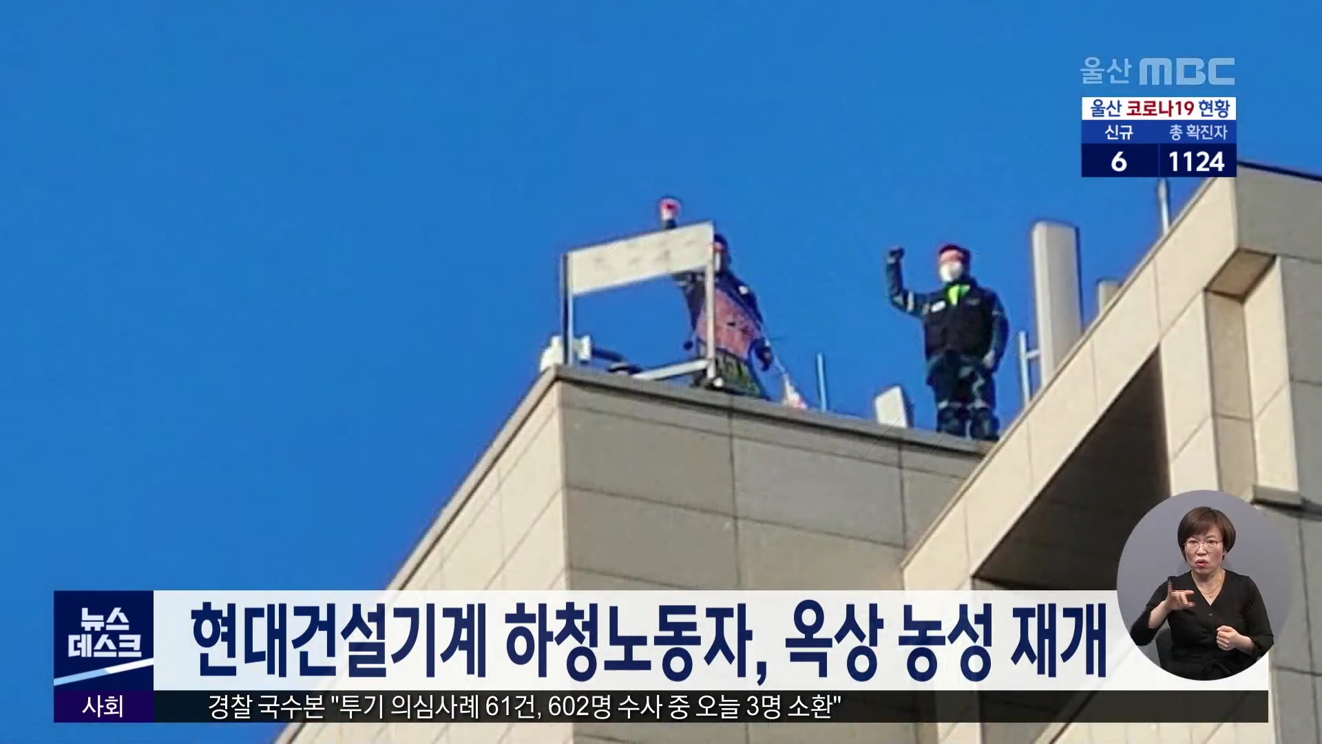 동구 호텔현대 옥상에서 농성을 시작했습니다.