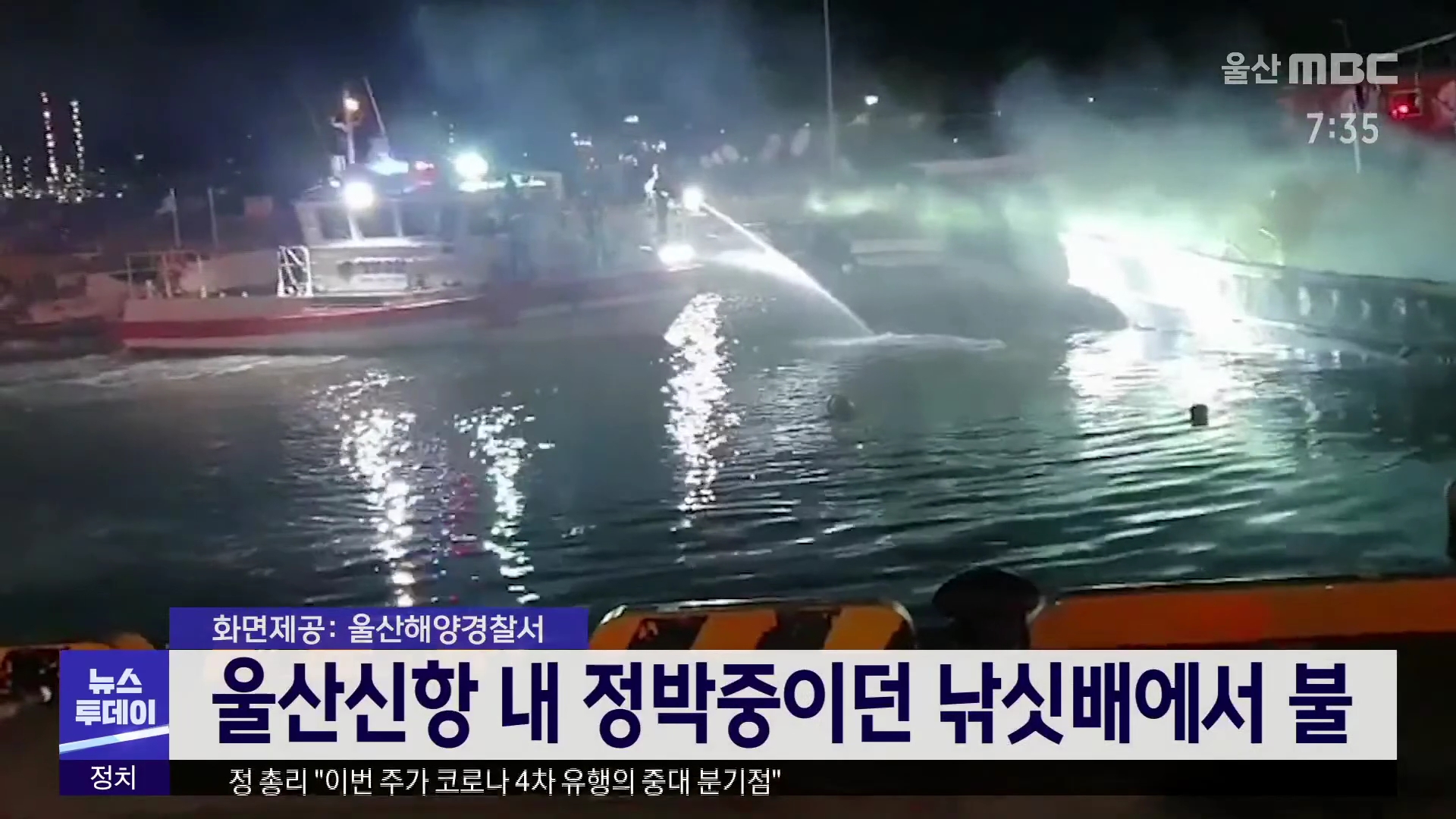 어젯밤(4/6) 9시 40분쯤 울산신항 내
