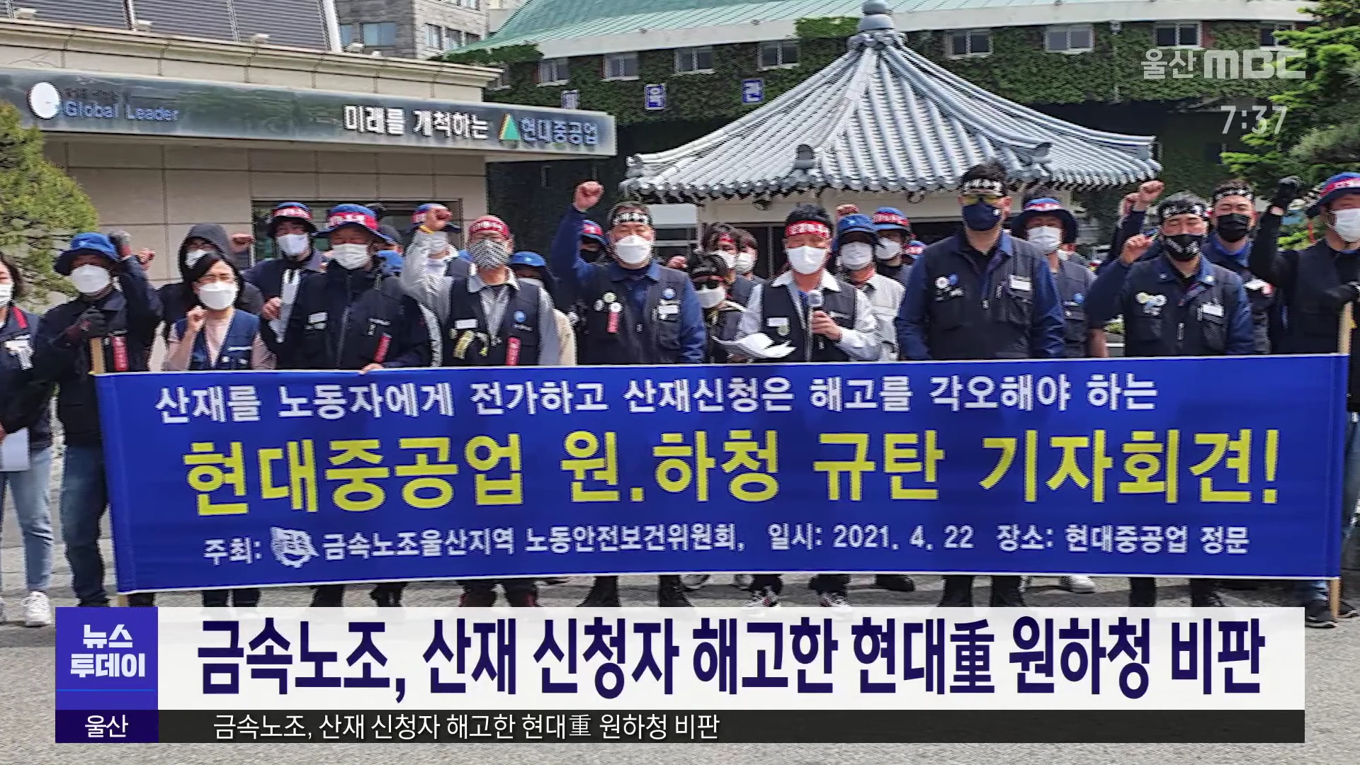 금속노조가 오늘(4/22) 현대중공업 앞에서
