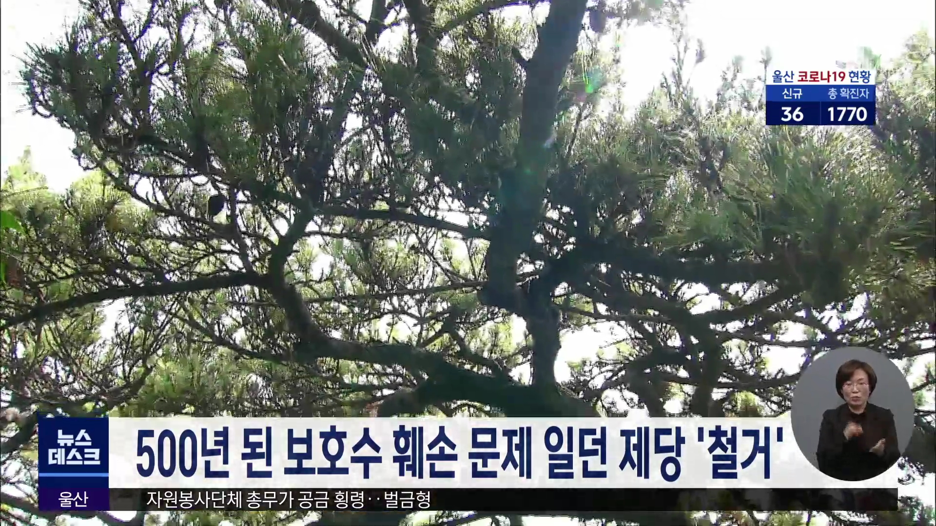 건물로 보호수 훼손과 철거 보상금 문제를
