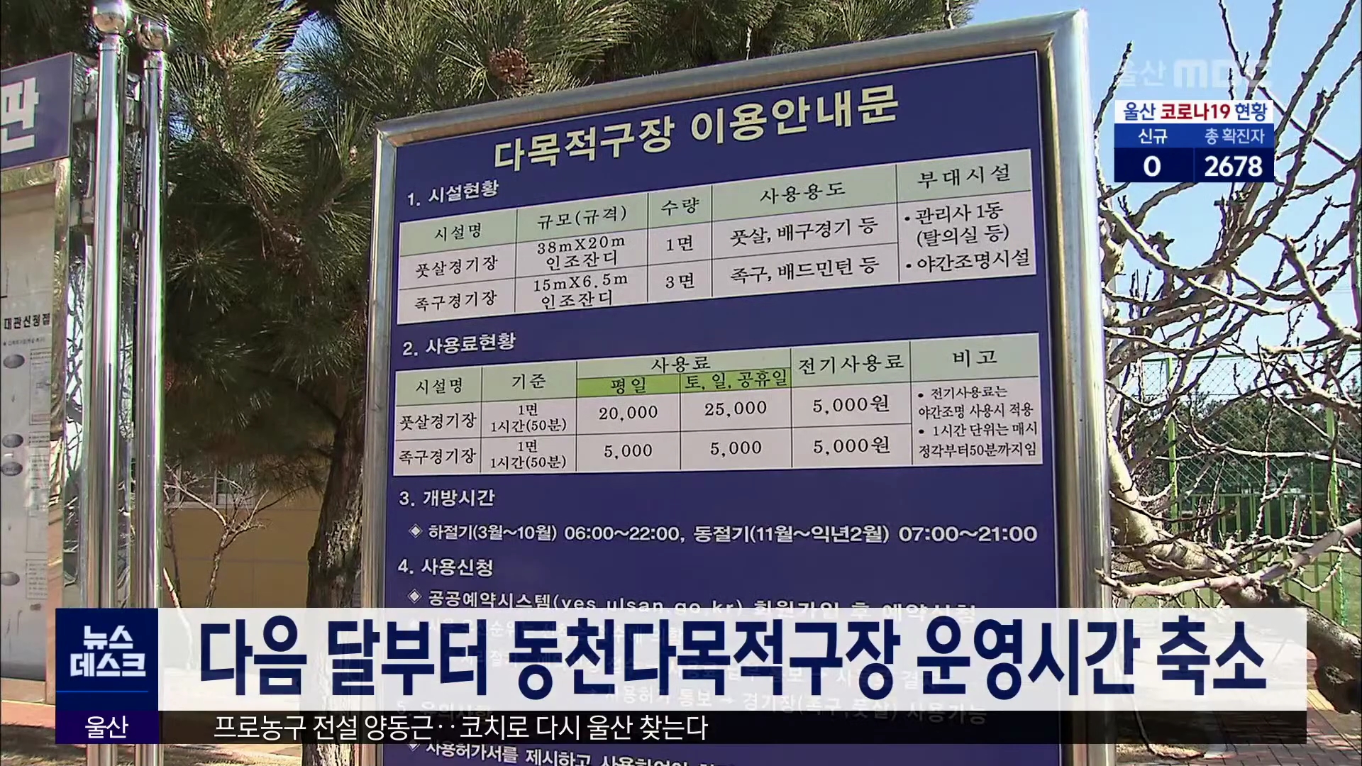 중구 동천다목적구장 운영시간이 축소됩니다.