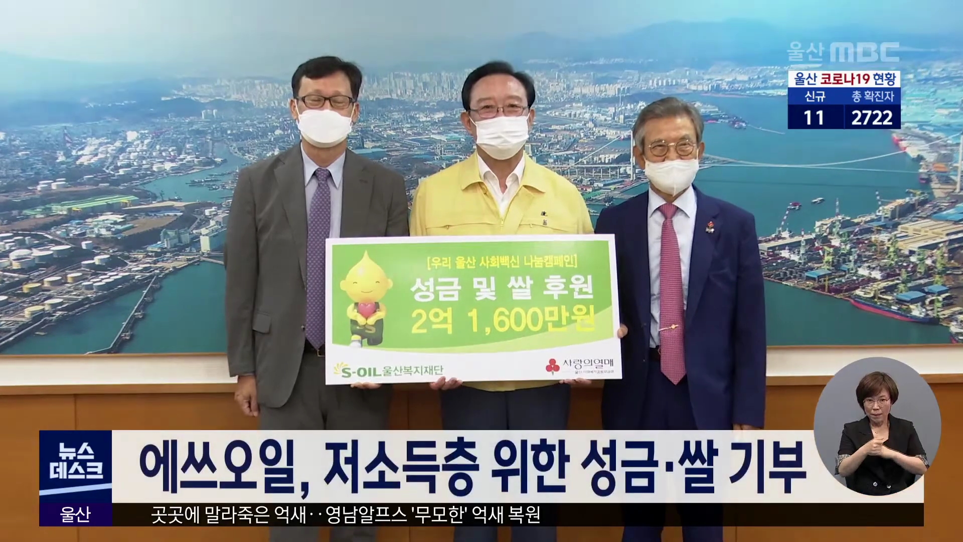 9천 만원 상당의 쌀을 함께 기부했습니다.