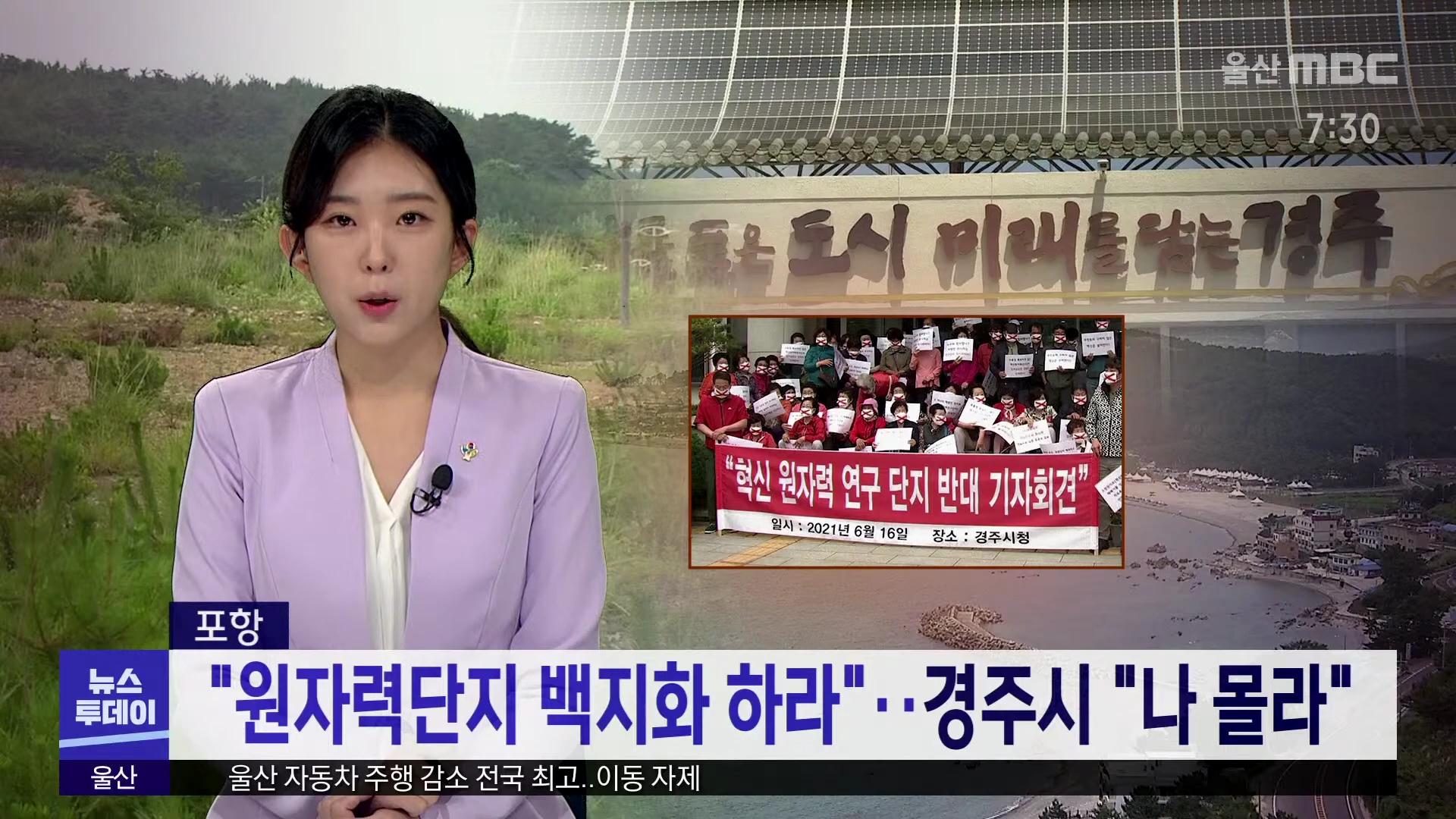 "향후 우리 읍민의 삶과 밀접한 영향이 있는 시설물인 원자력 연구단지, 일련의 과정을 일방적으로 추진한 정부와 경주시는 시설물 해당지역인 우리 감포읍민을 철저히 무시한 처사다."