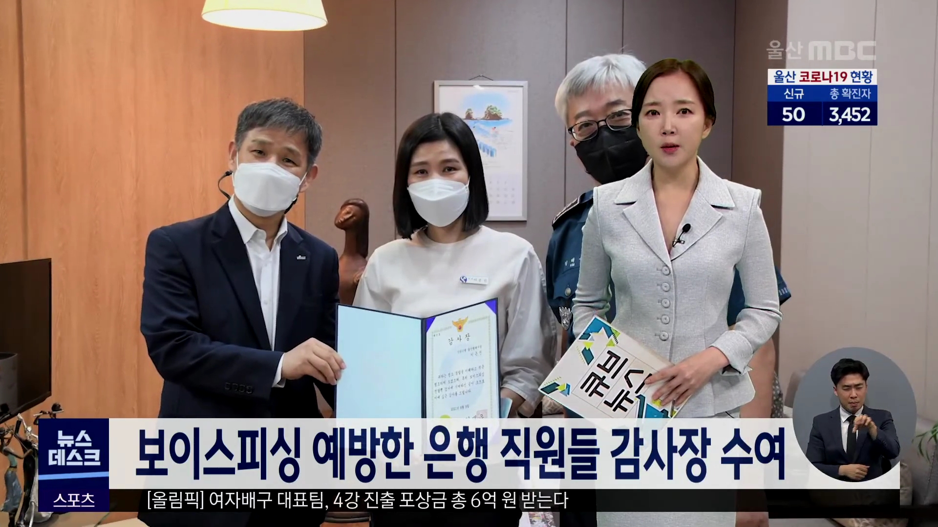은행원에게 감사장을 전달했습니다.