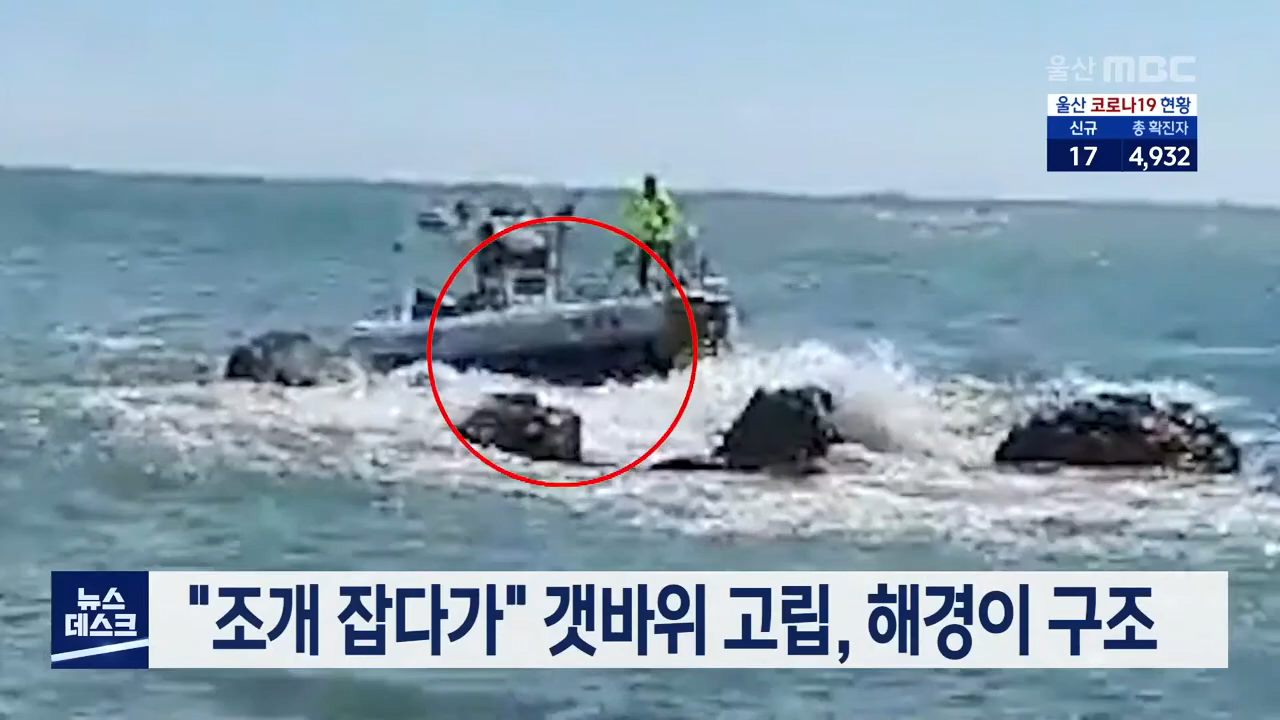높은 파도에 휩쓸려 갯바위에 고립됐습니다.