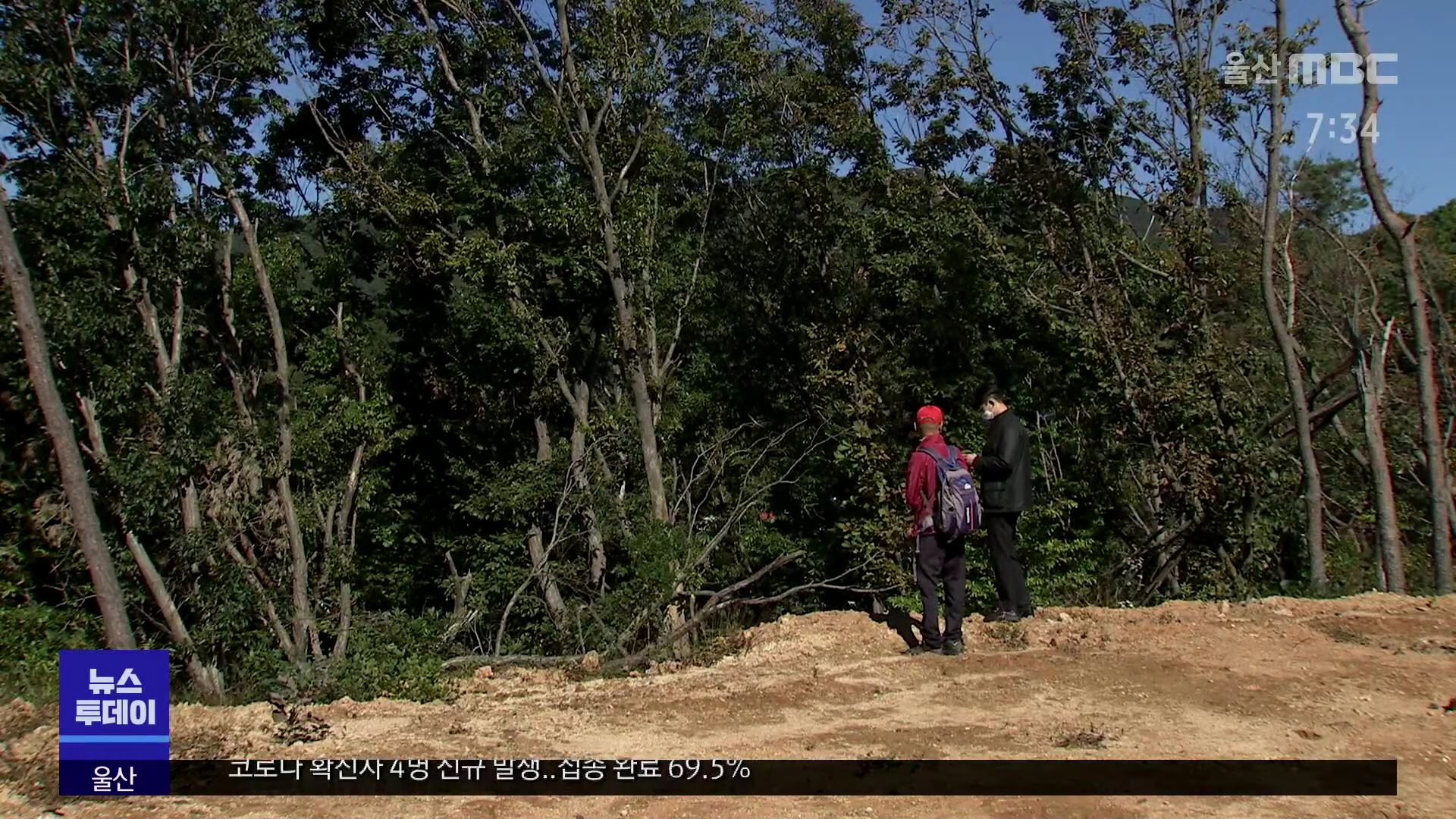 (S/U)"산 중턱에 갑자기 황무지가 형성돼 있는데요. 근처에는 이렇게 뿌리째 뽑힌 것으로 보이는 나무들이 곳곳에 방치돼 있습니다."