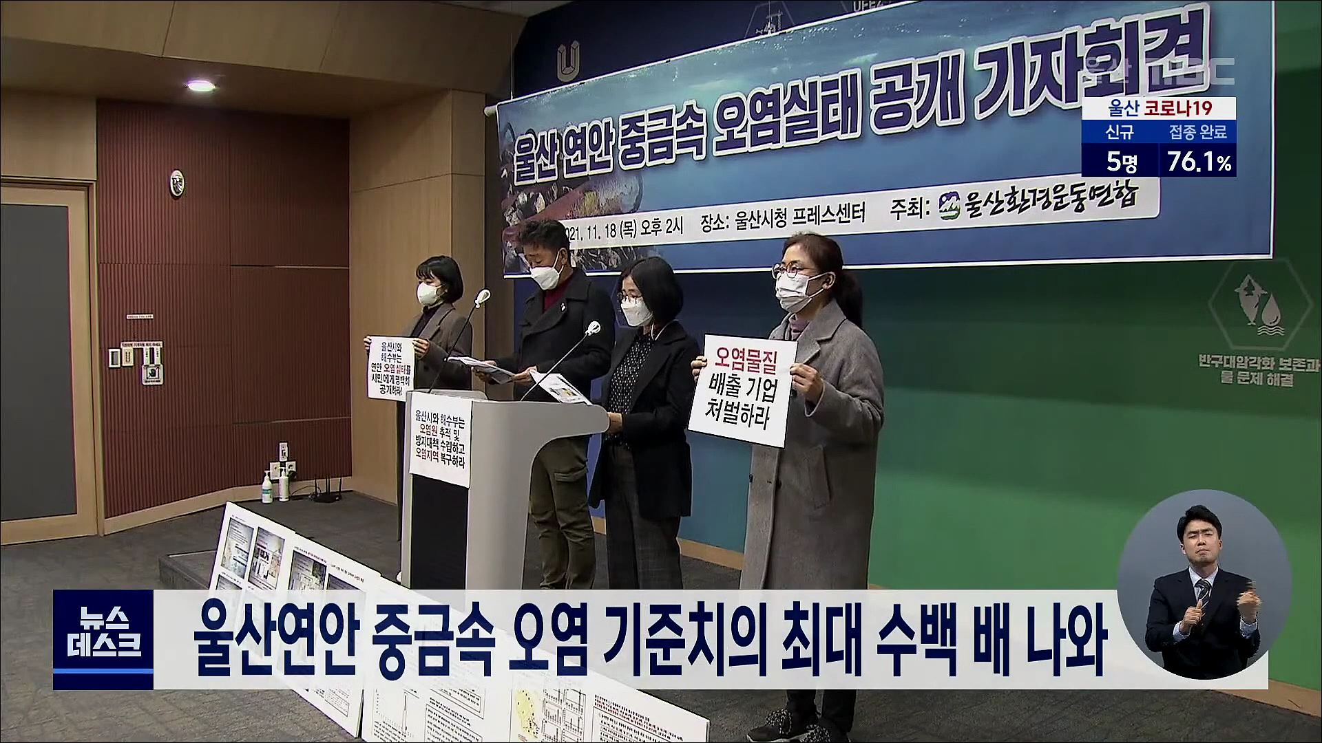 기자회견을 열고 울산 연안의 중금속 오염이