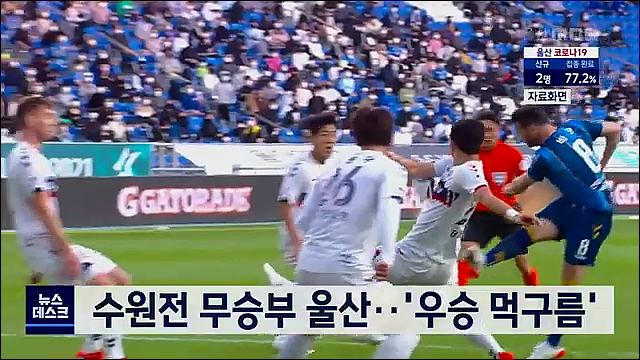 울산현대는 전반 19분 이동경의 페널티킥 실축과 후반 24분 이동준의 득점이 비디오 판독으로 취소되며 수원삼성과 0대0으로 비겼습니다.