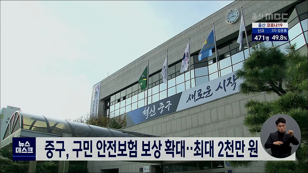 중구가 구민 안전보험 보상 한도액을
