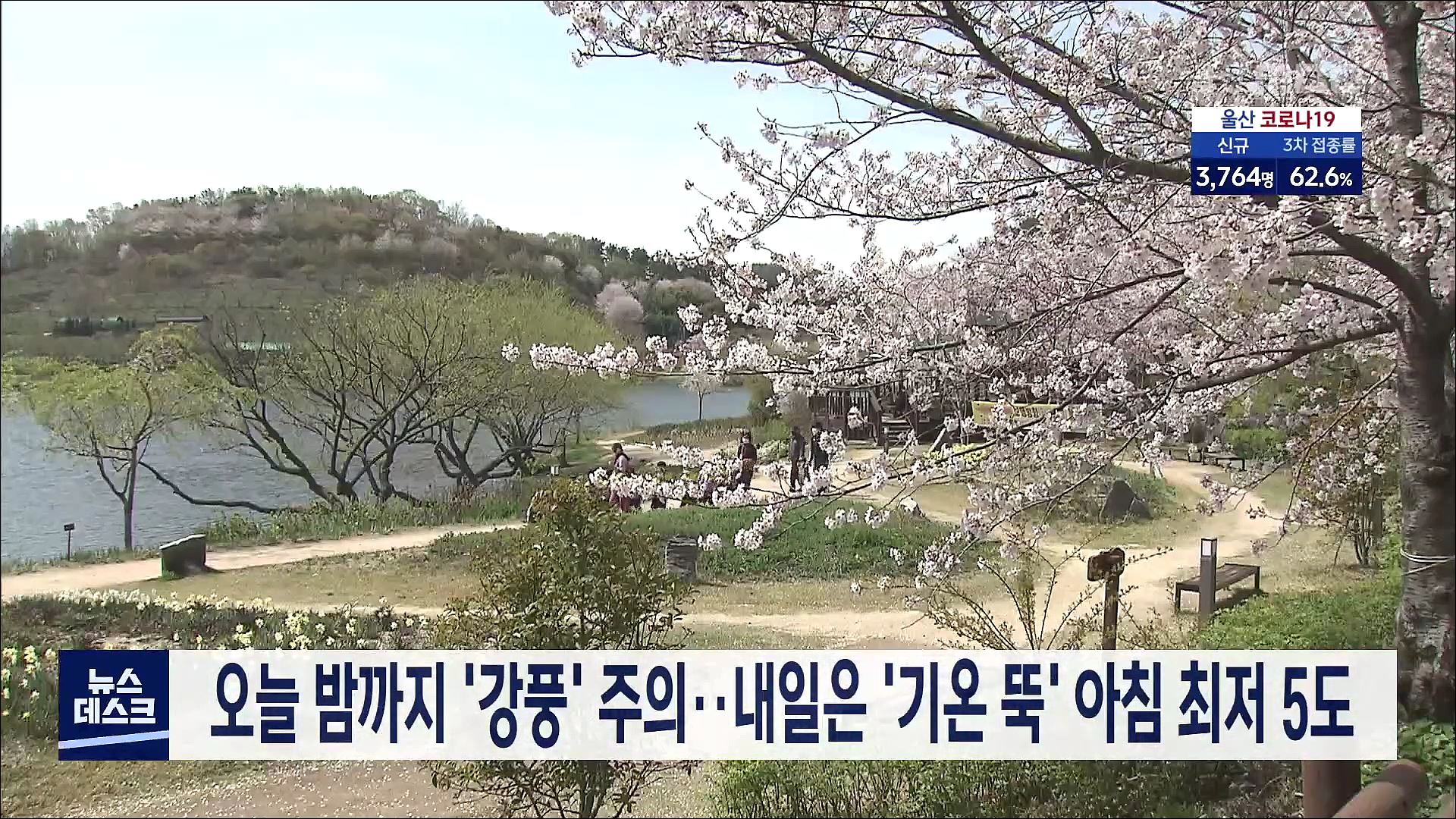 하지만 오늘 밤까지는 곳에따라 초속 15m의 돌풍 등