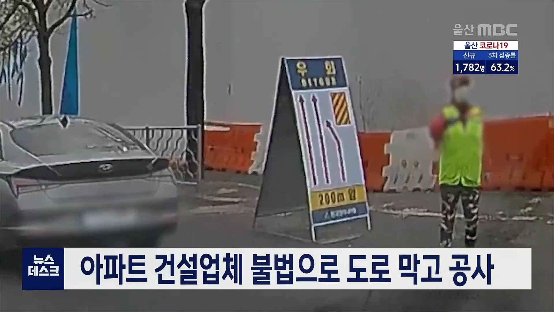 업체가 도로를 불법 점유하고 공사를 진행하며