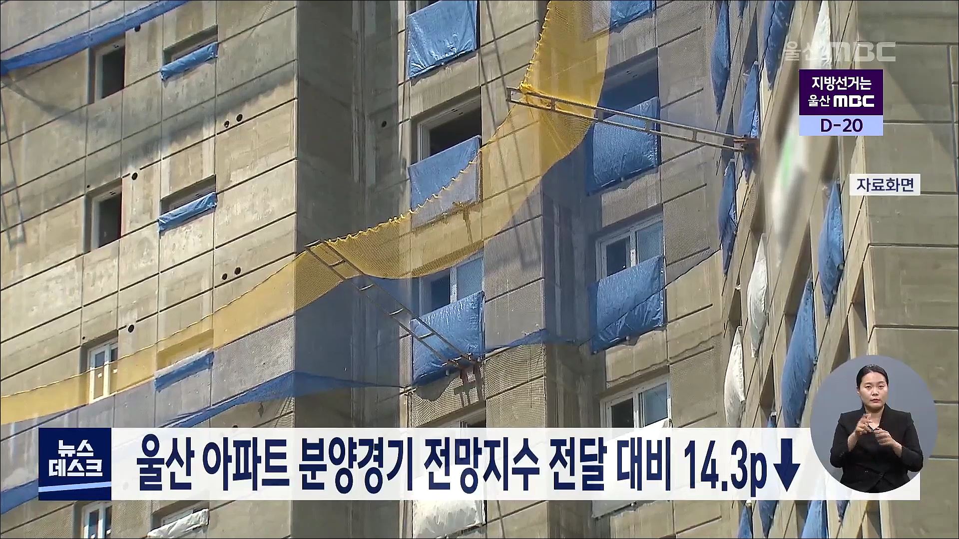 주택산업연구원이 발표한 5월 아파트분양전망 지수에 따르면 울산의 분양경기 전망 지수는 85.7로 전달에 비해 14.3p 낮아졌습니다.