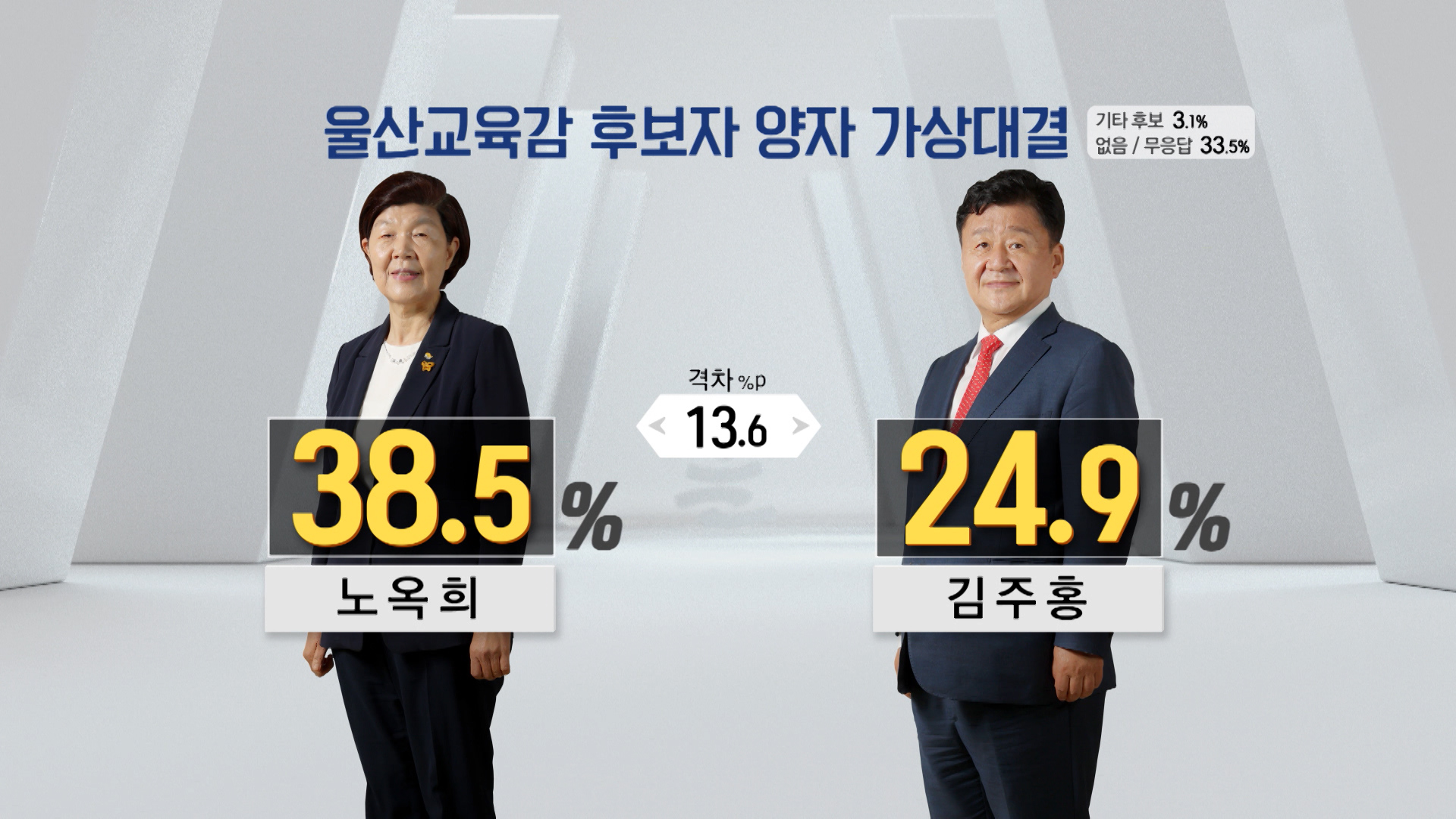 먼저 김주홍 후보와의 대결에서는 노옥희 후보 38.5%, 김주홍 후보 24.9%로 나타났습니다.