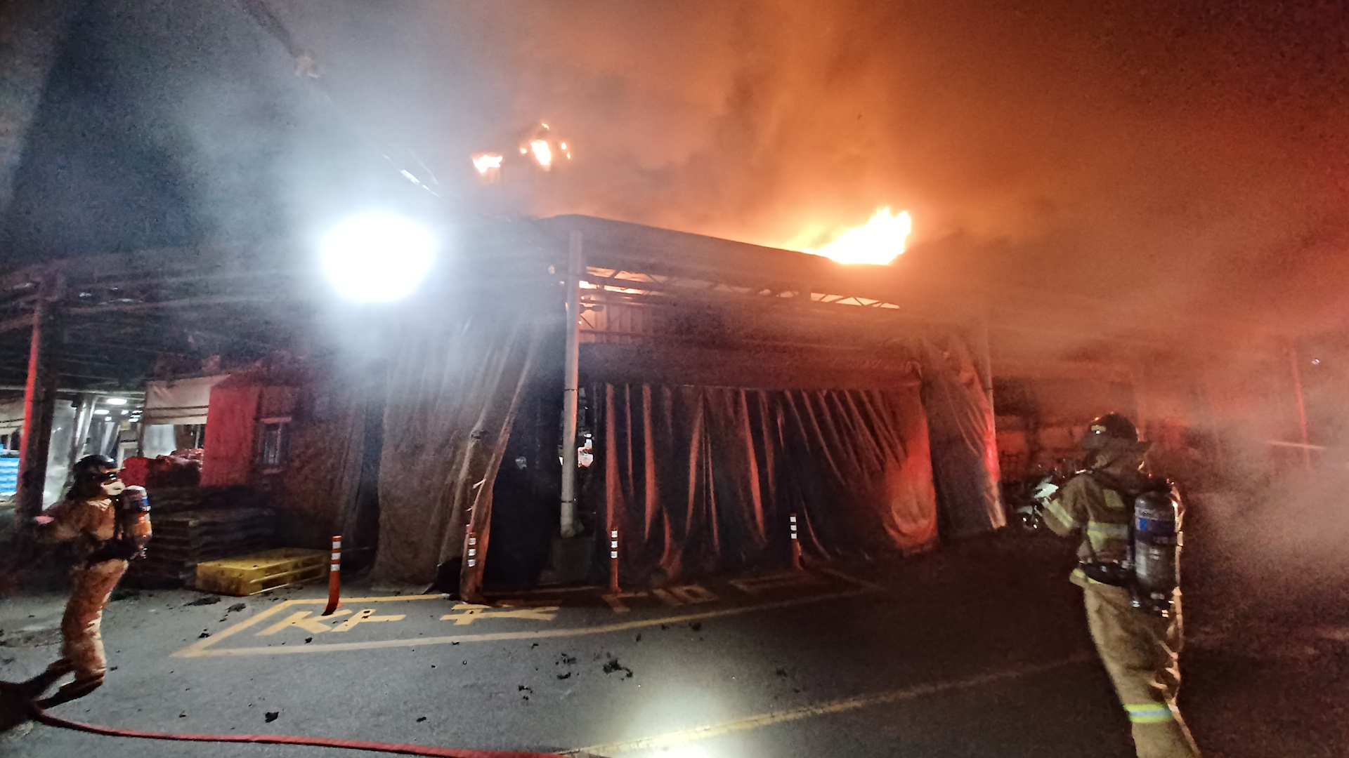 이 불로 인명피해는 없었으며 소방당국은 청과물동 지붕에서 불이 시작된 것으로 보고 정확한 화재 원인을 조사하고 있습니다.
