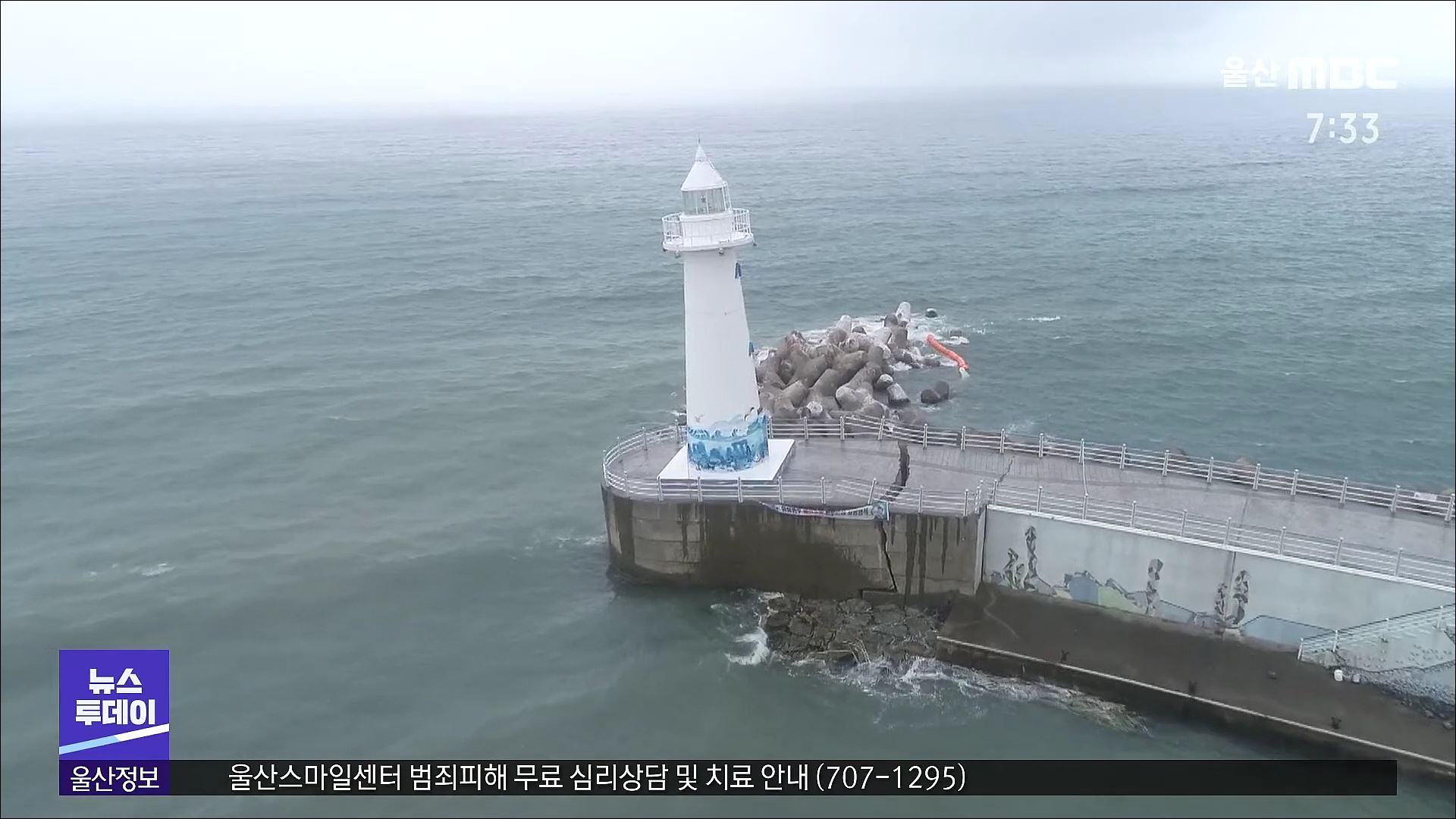 그런데 쌍둥이 등대 중 하나가, 방파제 아랫 부분이 파도에 파손되면서 기울어지는 일이 벌어졌습니다.