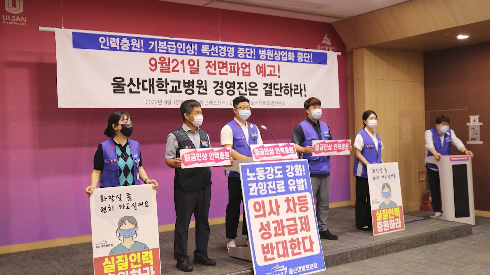 간호사와 사무직 직원 등 1천800명을 구성된 울산대병원 노조가 오는 21일 전면 파업을 예고했습니다.