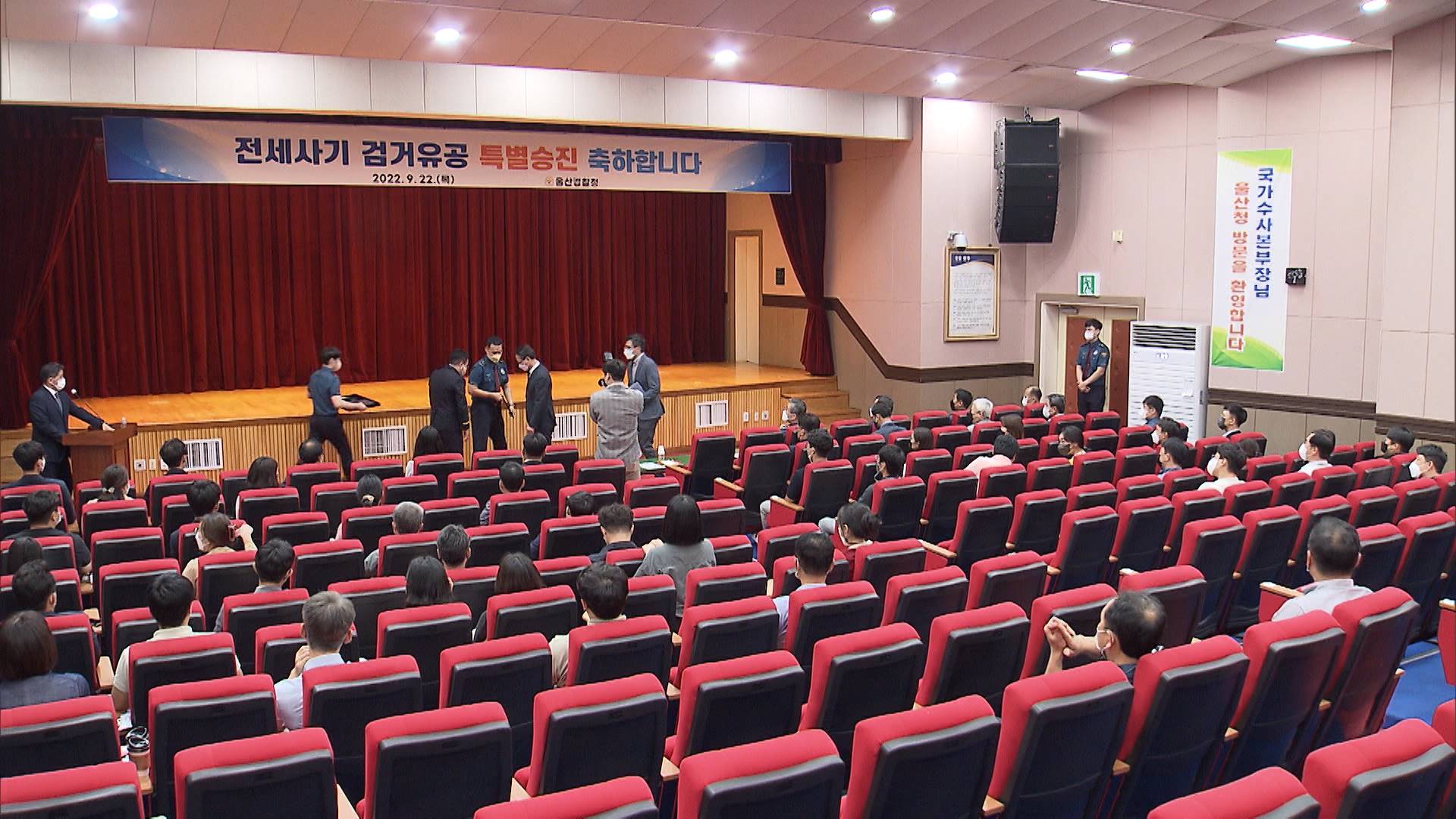 남구준 경찰청 국가수사본부장은 오늘(9/22) 울산경찰청 검거유공자 특별승진 임용식에 참석해 전세사기 사건에 대한 강력한 수사와 처벌을 강조했습니다.