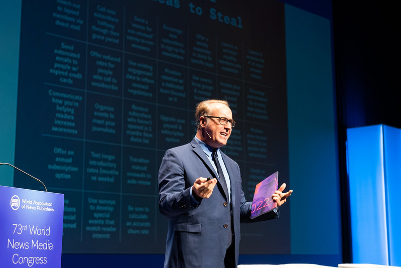 2022 세계뉴스총회에서 영국 이노베이션 미디어 컨설팅 그룹 Juan Señor 사장은 2022-23 세계 뉴스 미디어 혁신보고서를 발표했다. 그는 전 세계 미디어가 범람하는 가짜뉴스로 인해 큰 위기를 맞고 있다며 언론이 제 기능을 하려면 사실관계를 확인하는 팩트체크부터 이뤄져야하며 변화를 위한 5개의 혁신과 14개 비즈니스 모델을 제시했다.