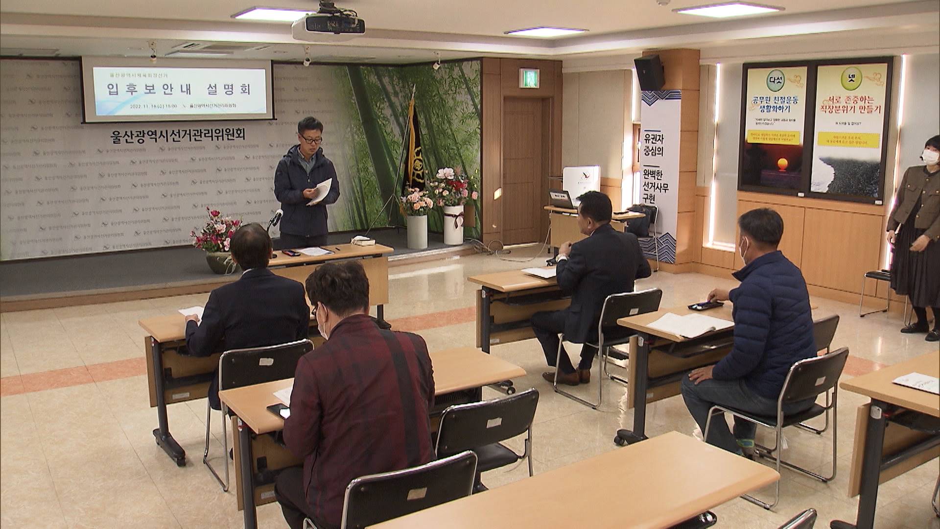 선관위는 후보자 등록에 필요한 서류와 절차 등을 안내하고 허위사실 공표, 선거인 매수 등의 불법 행위 사례를 중점 설명했습니다.