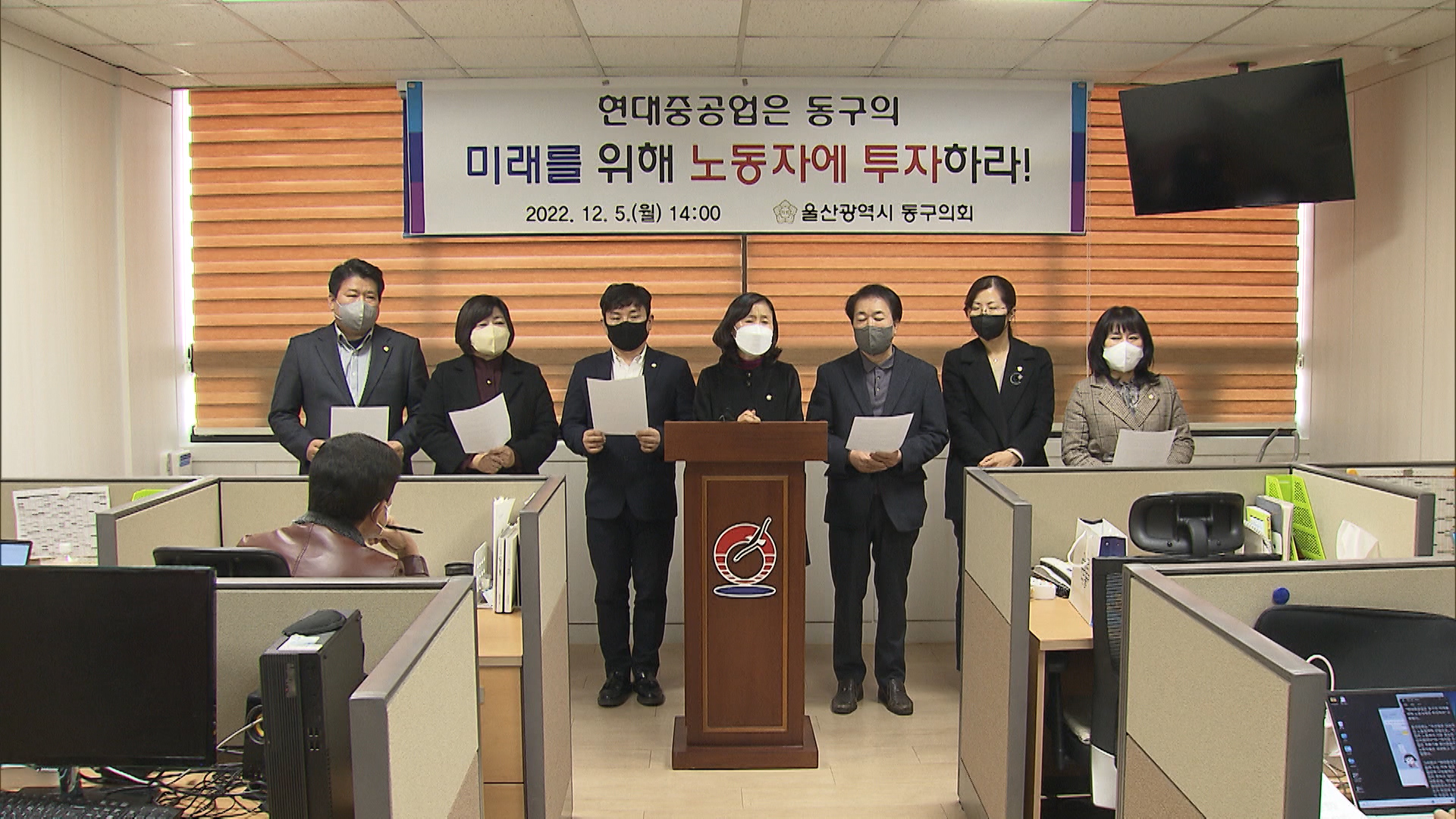 현대중공업 노조가 내일(12/6) 부분파업을 예고한 가운데 동구의회가 오늘(12/5) 기자회견을 열고 현대중공업 사측이 협상에 적극 나서달라고 요청했습니다.