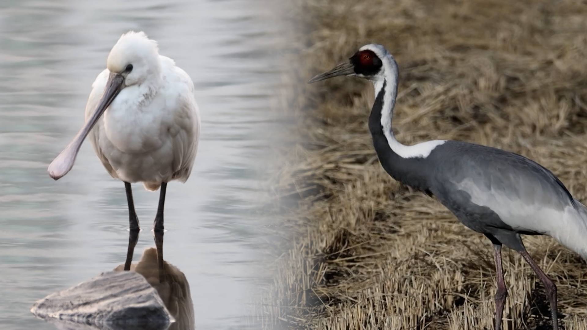 천연기념물이자 멸종위기야생생물인 노랑부리저어새와 재두루미가 울산에서 머무는 것으로 확인됐습니다.