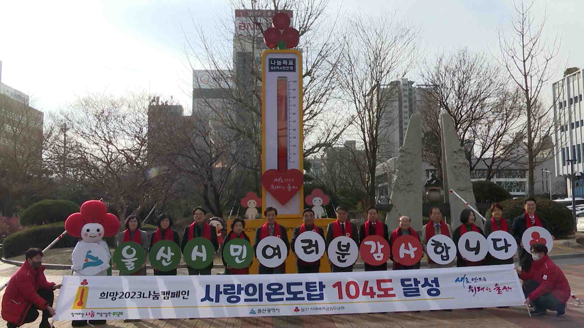 울산 모금액은 72억3천900만원으로, 목표액 69억4천만원을 초과해 사랑의 온도탑은 104.3도를 기록했습니다.