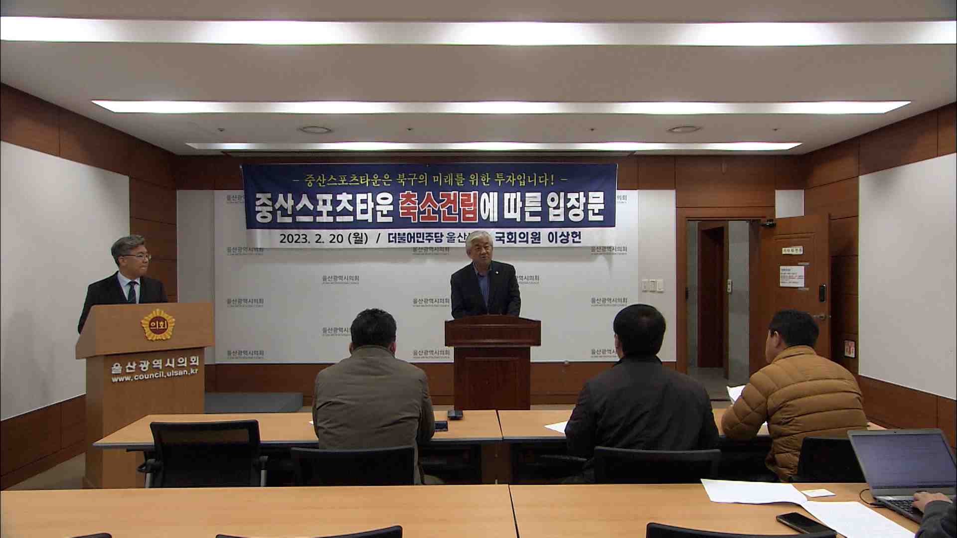 이 의원은 오늘(2/20) 울산시의회 프레스센터에서 기자회견을 열고 중산스포츠타운은 낙후된 북구 주민의 삶의 질 향상을 위한 미래지향적 계획이라며 사업 규모를 축소하면 안 된다고 강조했습니다.