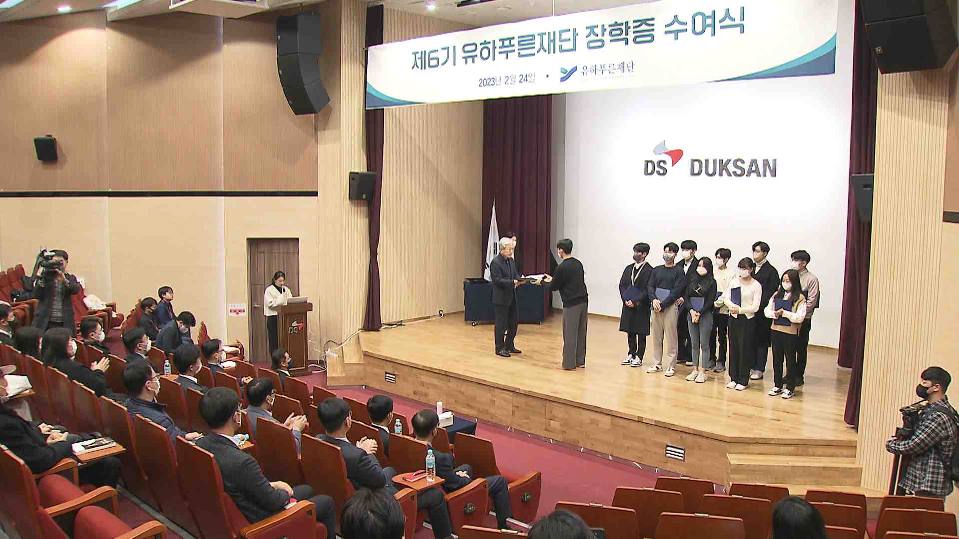 덕산그룹이 만든 장학재단, 유하푸른재단은 오늘(2/24) 덕산하이메탈 강당에서 제6기 장학금 수여식을 열었습니다.