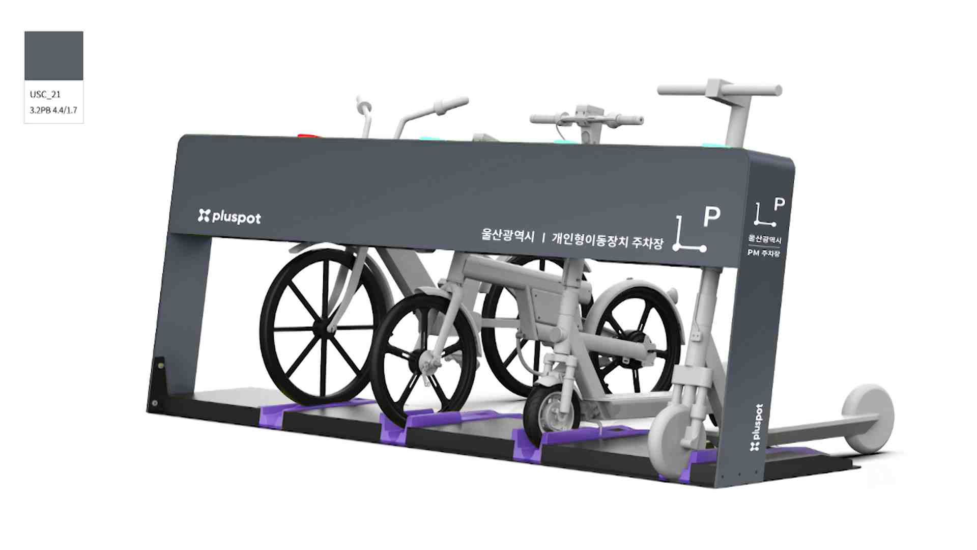 LG전자가 만든 스테이션은 전동 킥보드와 전기 자전거 등 퍼스널 모빌리티를 무선으로 충전할 수 있는 주차장입니다.