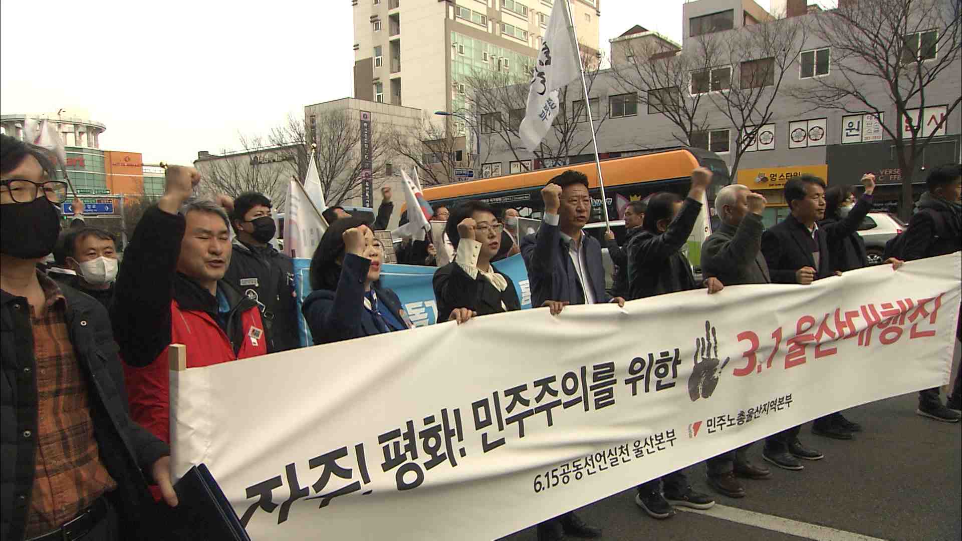 민주노총 울산본부는 3.1절을 맞아 남구 일대에서 집회를 열고 일제강점기 역사문제를 올바르게 해결하라고 촉구했습니다.