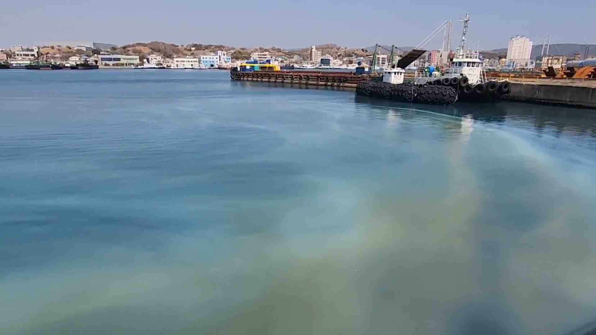 울산시는 지난 21일 오후 GS엔텍 용잠공장 앞 해상에 오·폐수로 추정되는 희뿌연 오염수가 흰색 띠 형태로 번져 방제 작업을 벌이고 성분을 확인 중이라고 밝혔습니다.