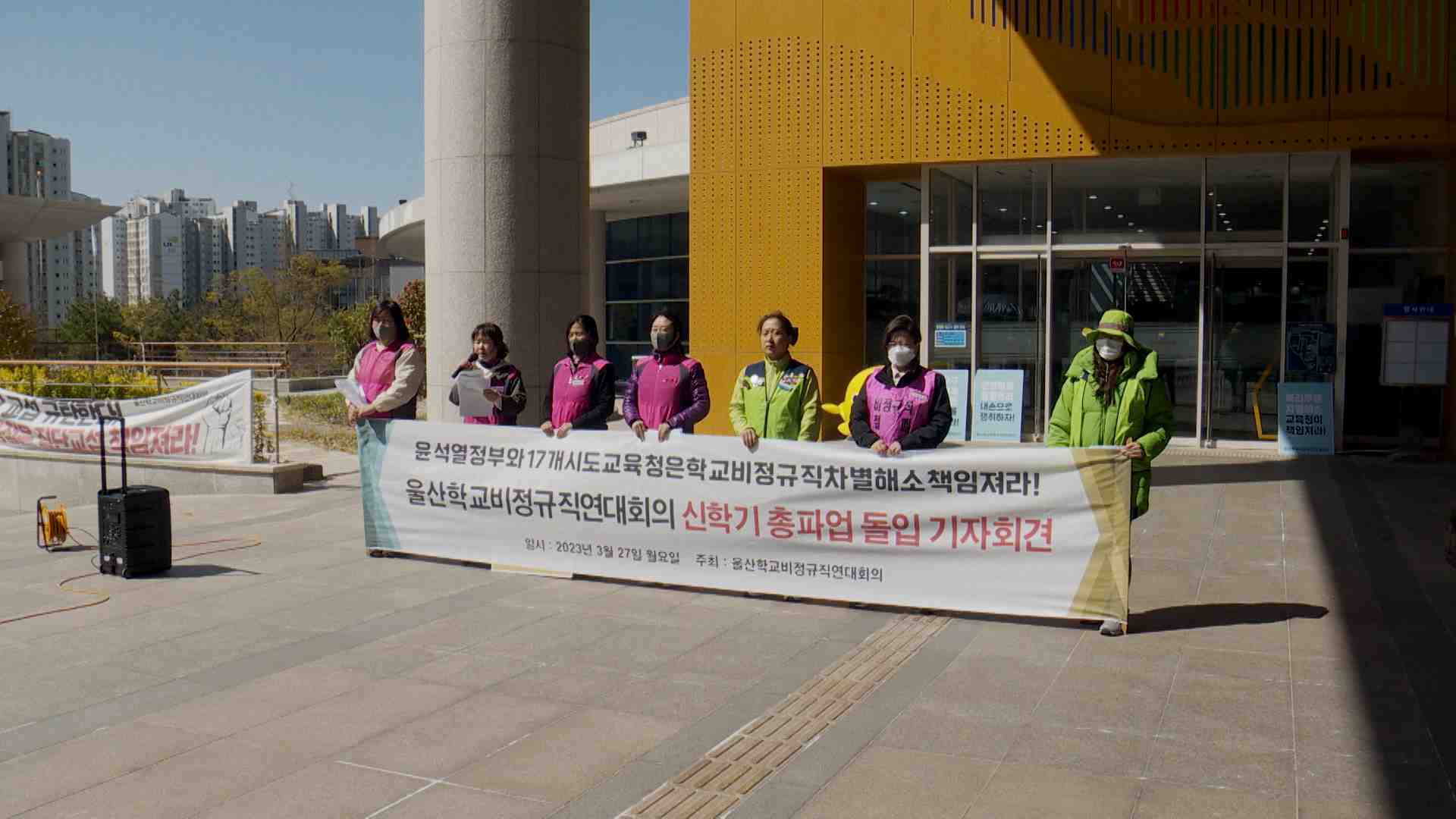 울산학교비정규직연대회의는 오늘(3/27) 울산시교육청 앞에서 기자회견을 갖고 오는 31일 전국 동시 다발적으로 총파업을 벌인다고 밝혔습니다.