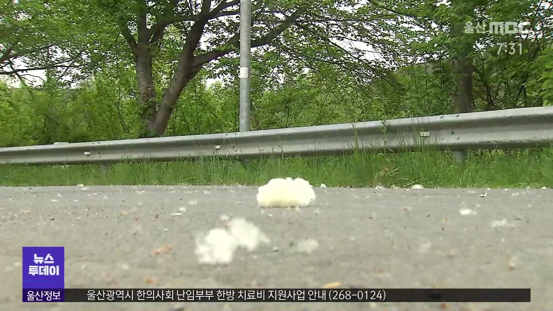 솜뭉치 같은 꽃가루 더미가 도로나 농지마다 수북이 쌓여 있습니다.
