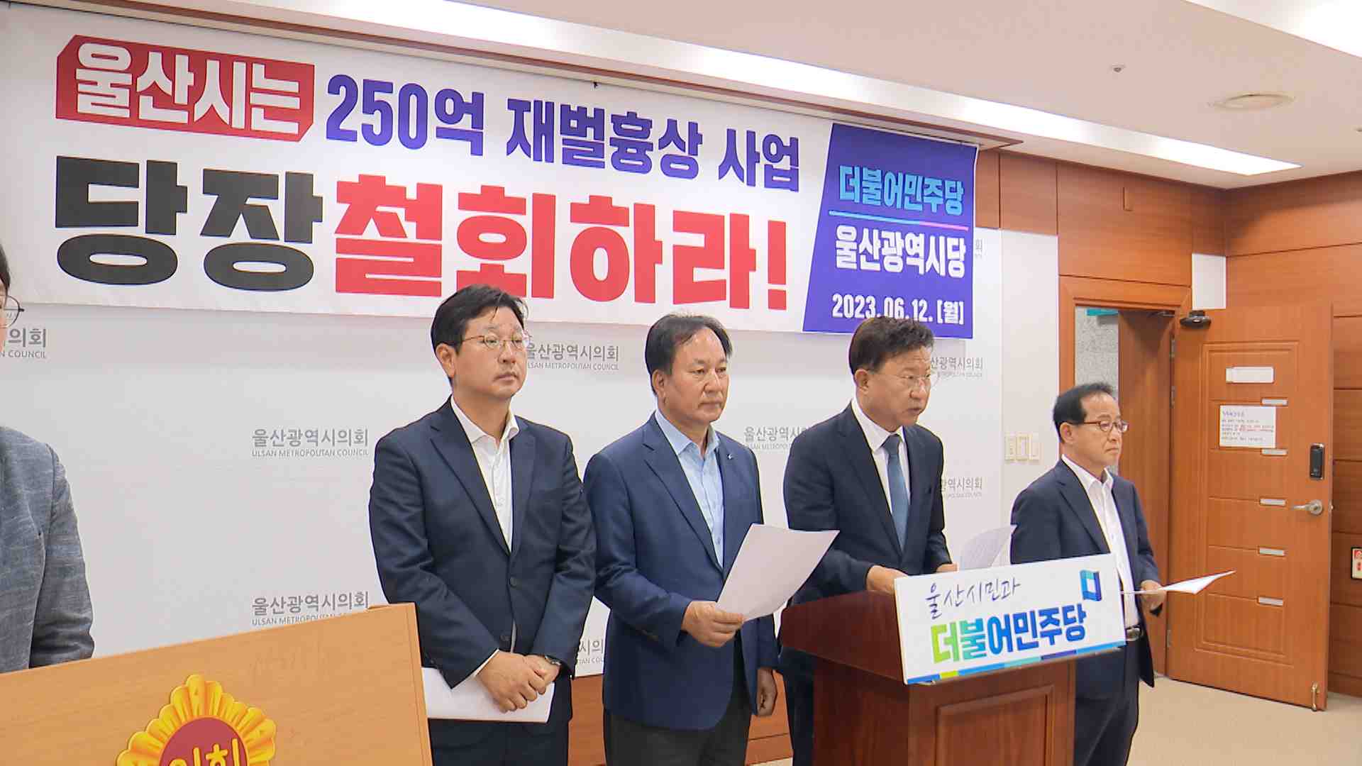 더불어민주당 울산시당은 250억원이 들어가는 재벌흉상 건립 사업은 세금낭비라며 기업인 흉상 사업이 철회될 때까지 반대 시민운동을 전개하겠다고 밝혔습니다.