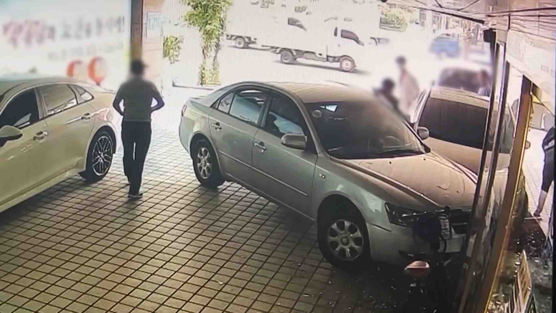 경찰은 승용차 운전자가 주차를 하다 제동이 완전히 되지 않은 상태로 차에서 내리다 사고가 난 것으로 보고 정확한 사고 경위를 조사하고 있습니다.