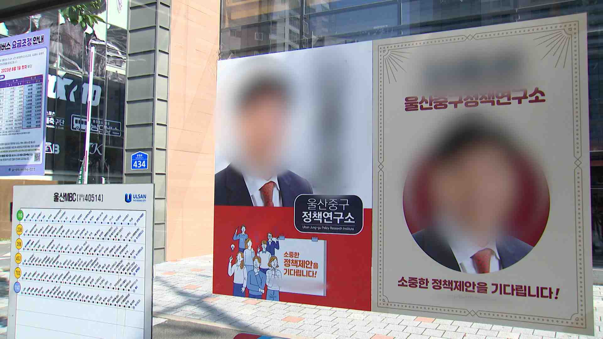내년 총선을 앞두고 개인 명의로 만들어진 정당 현수막이 난립하는 가운데 이제는 버스정류장에 개인을 홍보하는 불법 포스터까지 나붙고 있습니다.