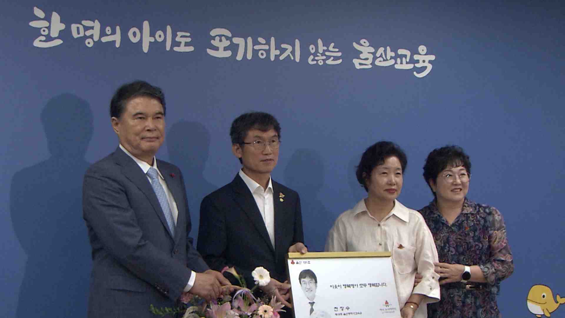 전국에서 전·현직 교육감 가운데 아너 소사이어티에 가입한 사람은 천 교육감이 처음이며 울산 공직자 가운데는 정갑윤 국회의원과 권오영 교육위원에 이어 세번째입니다.