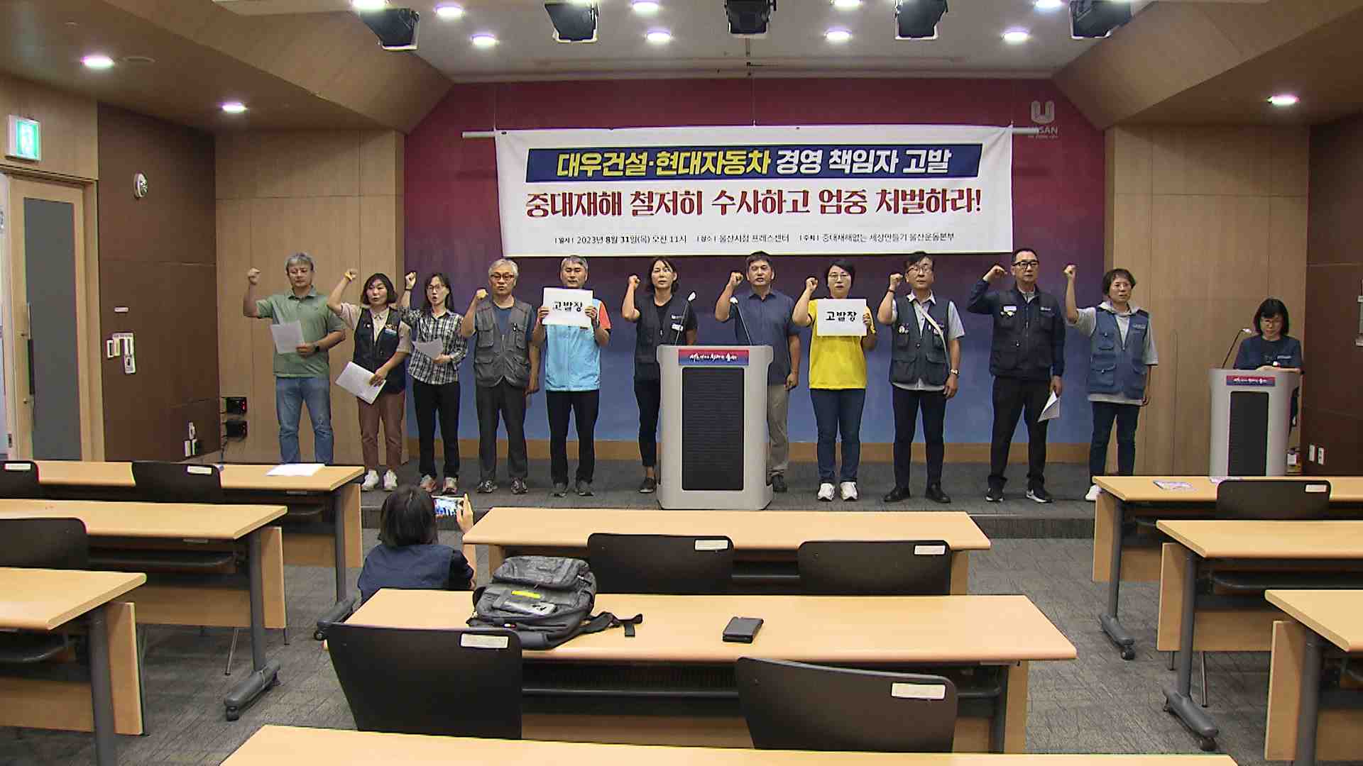 중대재해 없는 세상만들기 울산운동본부는 오늘(8/31) 울산시청에서 기자회견을 열고 중대재해가 발생한 대우건설과 현대자동차 경영책임자를 고용노동부에 고발했다고 밝혔습니다.