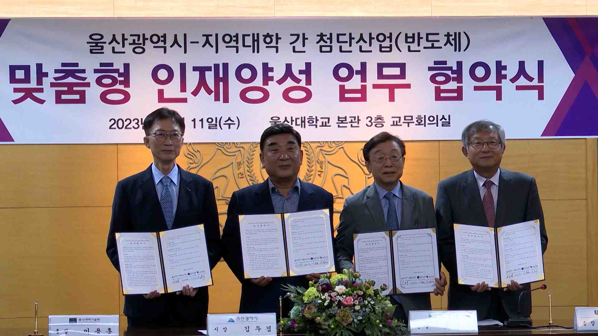 울산시와 울산대, 유니스트, 울산과학대가 오늘(10/11) 울산대에서 반도체 맞춤형 인재육성을 위한 업무협약을 체결했습니다.