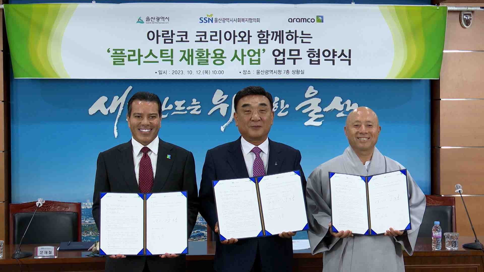 울산시가 아람코 한국법인과 함께 폐플라스틱 재활용 사업을 진행하기로 협약했습니다.