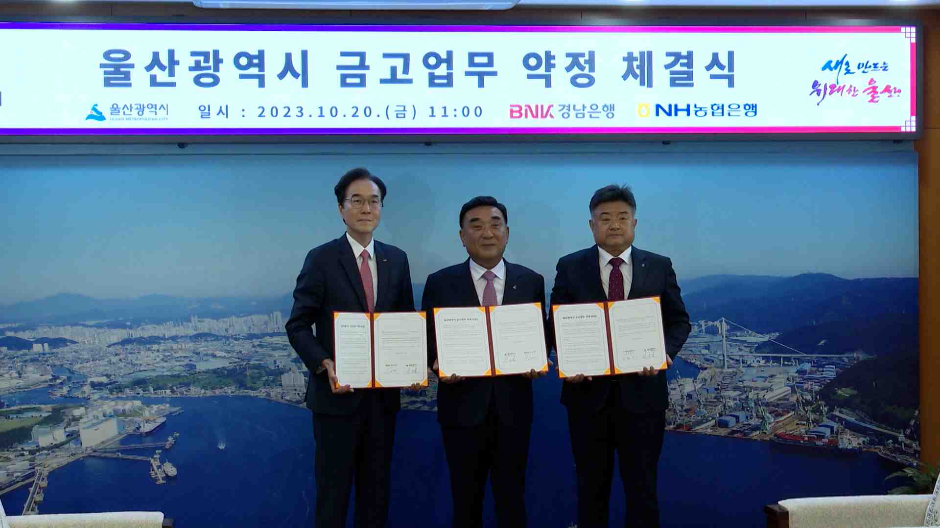 울산시와 BNK경남은행이 오늘(10/20) 지역 상생발전을 위한 업무협약을 체결하면서 은행명 개정에 대해 공동브랜드 사용에 상호협력하기로 한다고 표현했습니다.