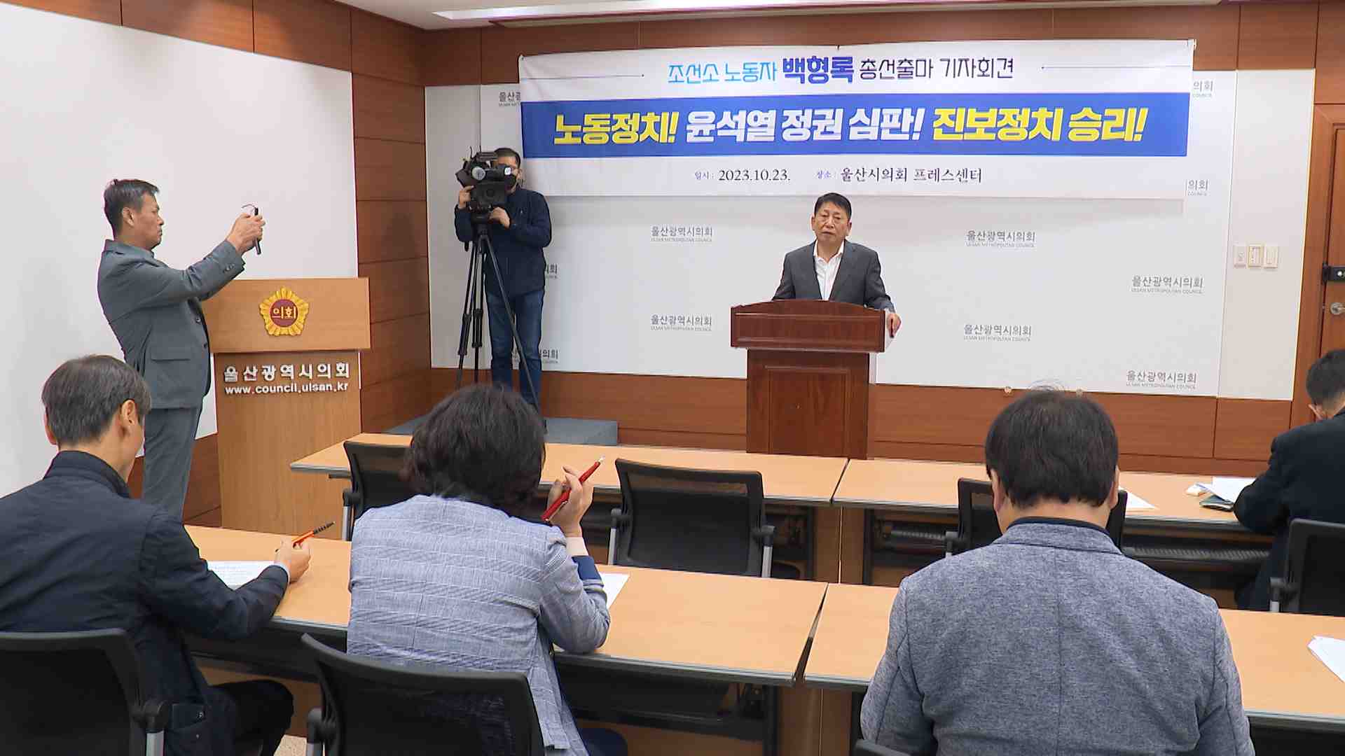 민주노총 울산지역 동구총선대책위원회가 오늘(10/23)까지 출마 후보자 접수를 받은 결과 현대중공업 퇴직 노동자 백형록씨와 이장우 노동당 울산시당 위원장 등 2명이 입후보했습니다.
