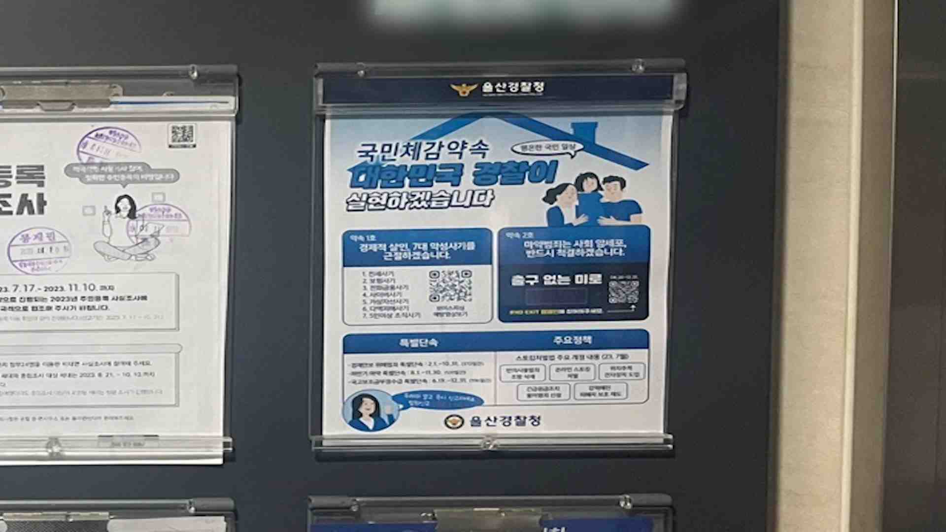 울산경찰청이 경찰 정책을 신속하고 정확하게 알리기 위해 아파트에 홍보 게시판을 운영합니다.