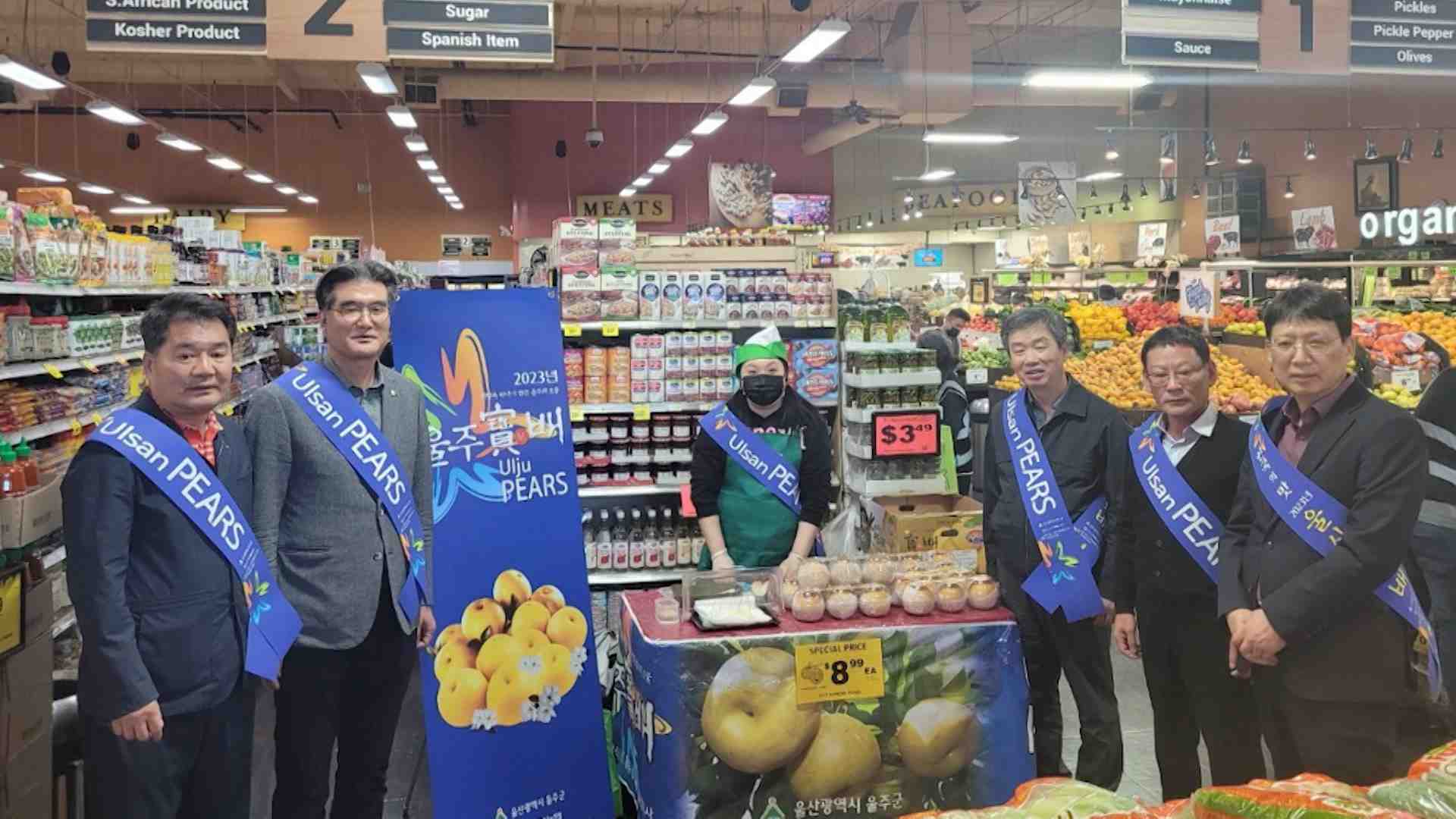 울주군은 지난달 30일부터 미국 LA 현지에 '울주배 미국 수출 판촉 홍보단'을 파견해 울주배 시식과 판촉 홍보 행사를 열고 있습니다.