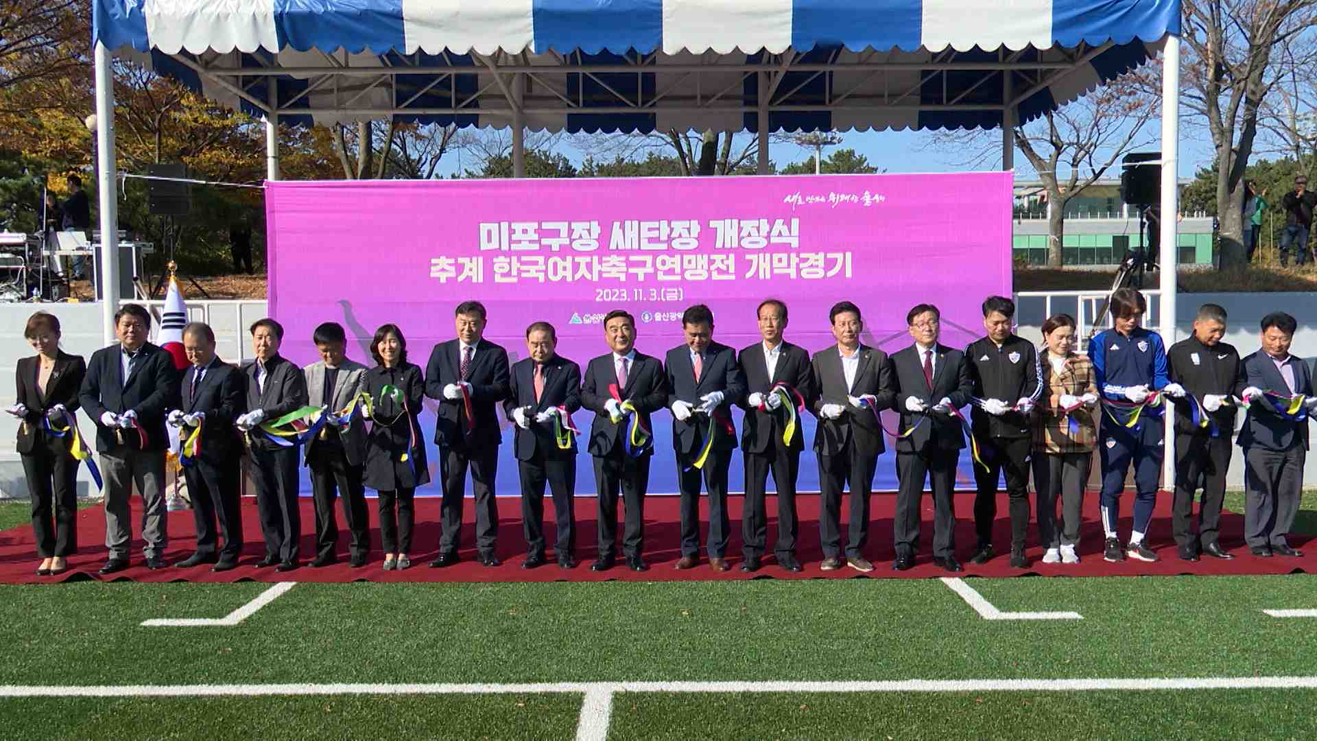 울산시는 미포구장 천연잔디 구장을 인조잔디로 바꾸고 테니스장, 족구장, 농구장을 비롯한 트랙, 화장실 등 편의시설을 재정비하고 울산시체육회에 운영을 맡겼습니다