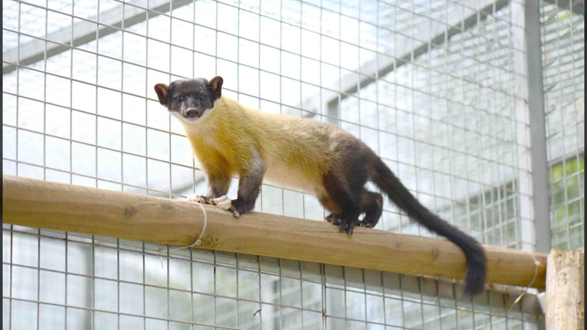 노란 목도리 담비는 몸길이 60cm 정도로 소형 동물을 먹고 사는 육식성이며 생태계 회복 지표로 알려져 있습니다.