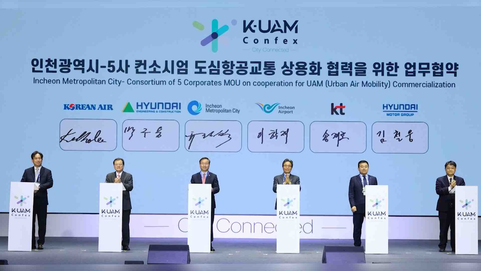 ‘K-UAM 원 팀’으로 명명된 컨소시엄은 현대차를 비롯해 KT, 대한항공, 인천국제공항공사, 현대건설 등 5개 사가 국내 도심항공교통 서비스의 성공적 실현을 위해 2021년 처음 결성한 컨소시엄입니다.